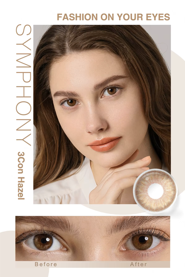 Discover the elegance of hazel contact lenses with a warm undertone.
